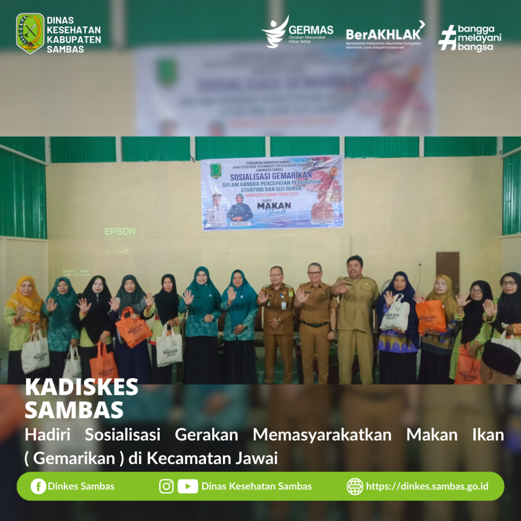 SAMBAS – Kepala Dinas Kesehatan Kabupaten Sambas dr. Ganjar Eko Prabowo, M.M., menghadiri Sosialisasi Gerakan Memasyarakatkan Makan Ikan ( Gemarikan ) yang dilaksanakan oleh Dinas Perikanan, Peternakan, dan Kesehata Hewan Kab. Sambas di Gedung GW Badminton Nyireh Desa Sui. Nyireh Kec. Jawai Selasa, 27 Juni 2023.