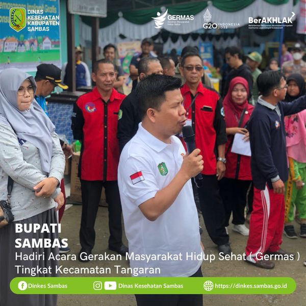Sambas – Bupati Sambas H. Satono, S. Sos.I., MH., didampingi Ketua TP – PKK Kabupaten Sambas Yunisa Satono, S. Pd., dan Kepala Dinas Kesehatan Kabupaten Sambas Hendy Wijaya, SKM., MPH., menghadiri kegiatan Gerakan Masyarakat Hidup Sehat ( Germas ) tingkat Kecamatan Tangaran Ahad, 9 Oktober 2022.