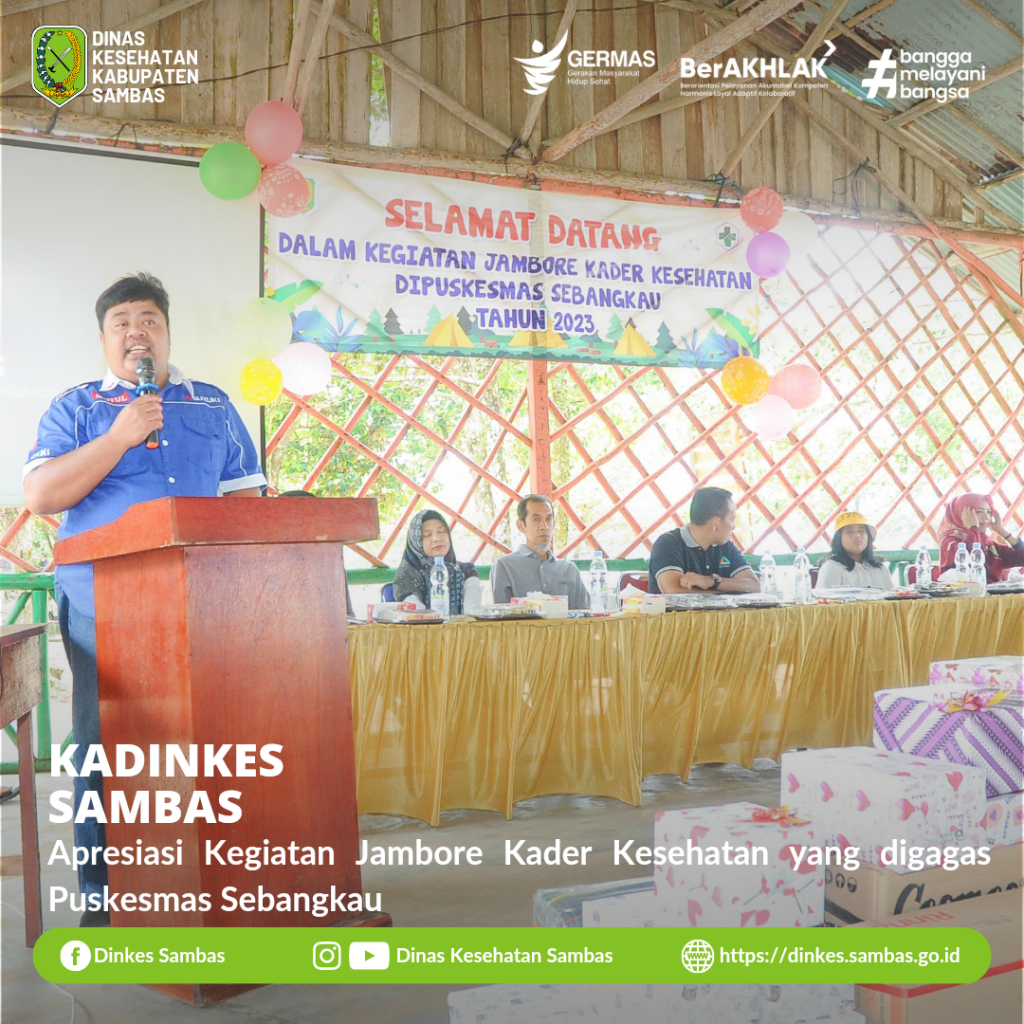 SAMBAS – Kepala Dinas Kesehatan Kabupaten Sambas dr. Ganjar Eko Prabowo, M.M., menghadiri Jambore Kader Kesehatan Puskesmas Sebangkau di Pantai Pasir Panjang Singkawang Ahad, 26 Februari 2023.