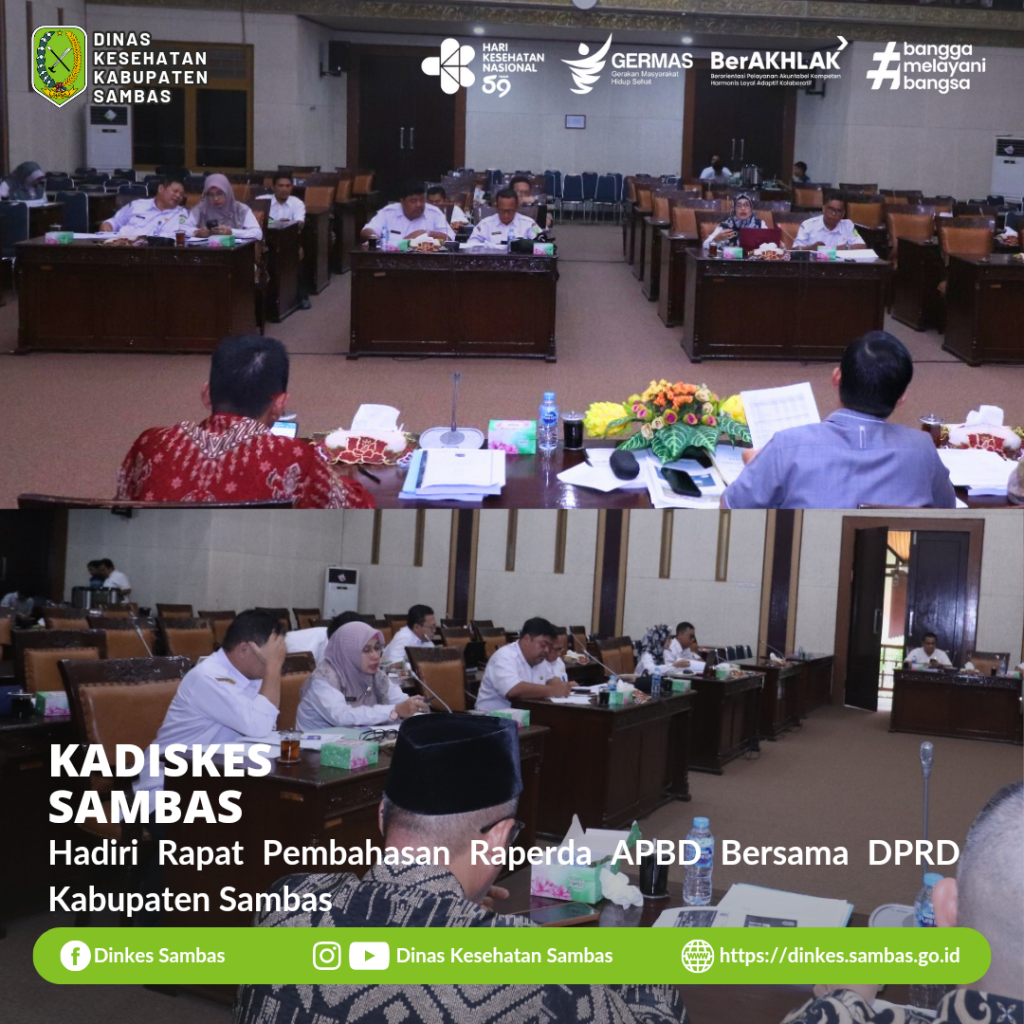 SAMBAS – Kepala Dinas Kesehatan Kabupaten Sambas dr. Ganjar Eko Prabowo, M.M., menghadiri Rapat Pembahasan Raperda APBD Kabupaten Sambas Tahun Anggaran 2024 di Ruang Sidang DPRD Kabupaten Sambas Rabu ( 8/11/2023 ).