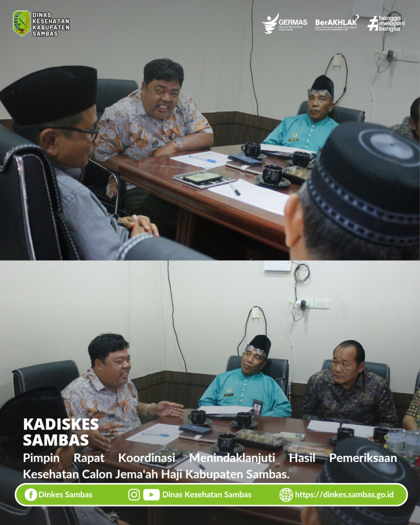 SAMBAS – Kepala Dinas Kesehatan Kabupaten Sambas dr. Ganjar Eko Prabowo, M.M., memimpin Rapat Koordinasi Pelayanan Kesehatan Jema’ah Haji Kabupaten Sambas diruang rapat Kepala Dinas Jum’at ( 2/2/2024 ).