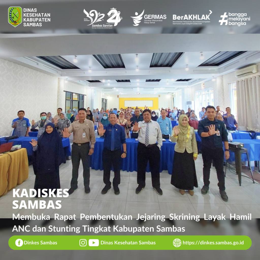 SAMBAS – Kepala Dinas Kesehatan Kabupaten Sambas dr. Ganjar Eko Prabowo, M.M., menghadiri sekaligus membuka Rapat Pembentukan Jejaring Skrining Layak Hamil ANC dan Stunting diaula serbaguna Hotel Pantura Jaya Sambas Kamis, 13 Juli 2023.