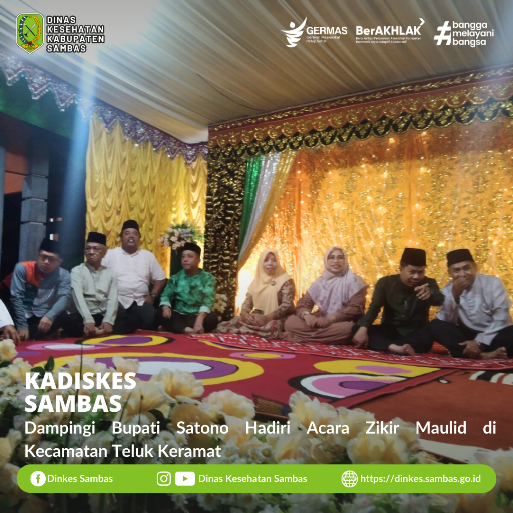 SAMBAS – Kepala Dinas Kesehatan Kabupaten Sambas dr. Ganjar Eko Prabowo, M.M., turut mendampingi Bupati Sambas H. Satono, S. Sos.I., M.H., bersama Ketua TP-PKK Kab. Sambas Hj. Yunisa Satono, S. Pd., M. AP., menghadiri acara Zikir Maulid di Desa Sayang Sedayu Kec. Teluk Keramat Sabtu Malam, 30 September 2023.