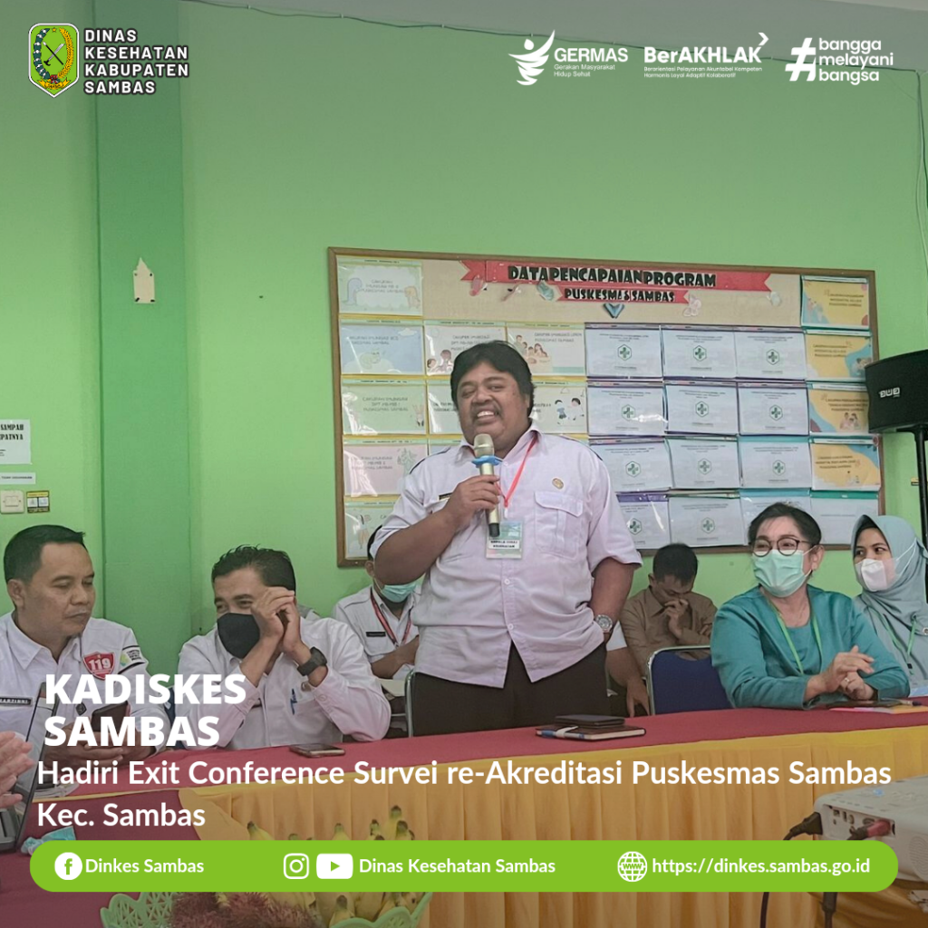 SAMBAS – Kepala Dinas Kesehatan Kabupaten Sambas dr. Ganjar Eko Prabowo, M.M., menghadiri Exit Conference Survei re-Akreditasi Puskesmas Sambas diaula Lantai 2 Puskesmas Sambas, Desa Dalam Kaum, Kec. Sambas Rabu ( 18/10/2023 ).