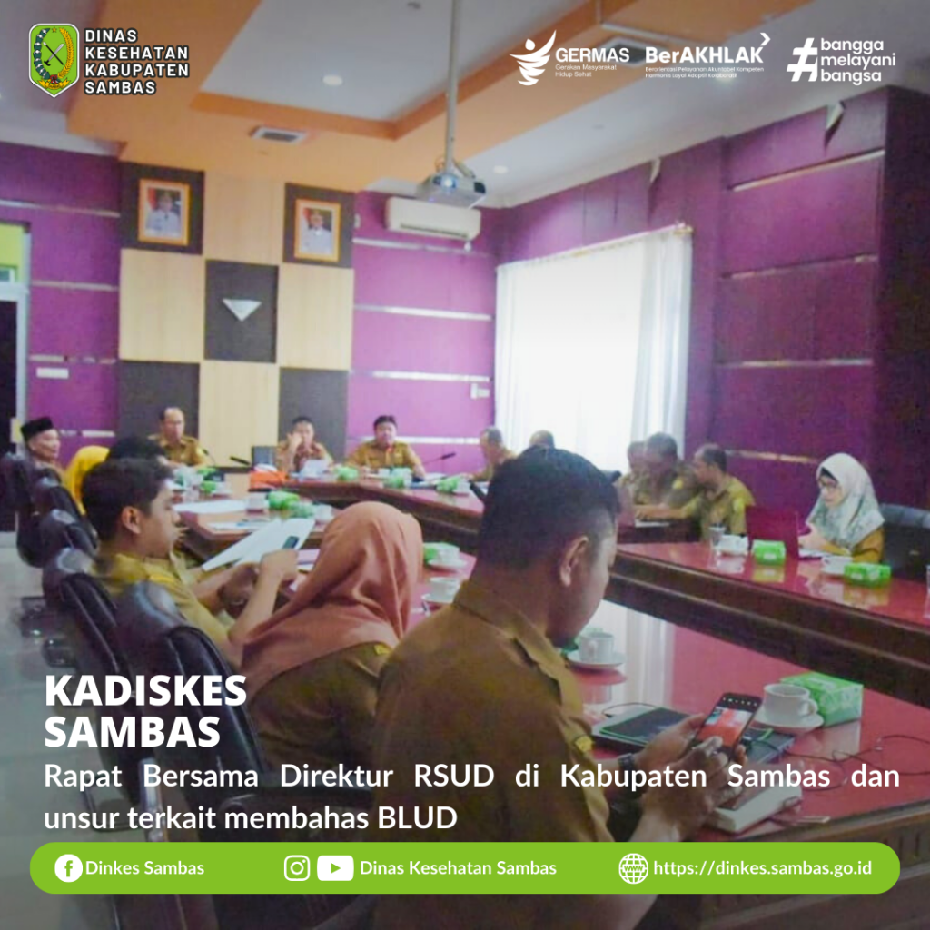 SAMBAS – Kepala Dinas Kesehatan Kabupaten Sambas dr. Ganjar Eko Prabowo, M.M., mengikuti Rapat Pembahasan Badan Layanan Umum Daerah ( BLUD ) di Ruang Rapat Asisten Administrasi Umum Sekda Sambas Senin, 4 September 2023.