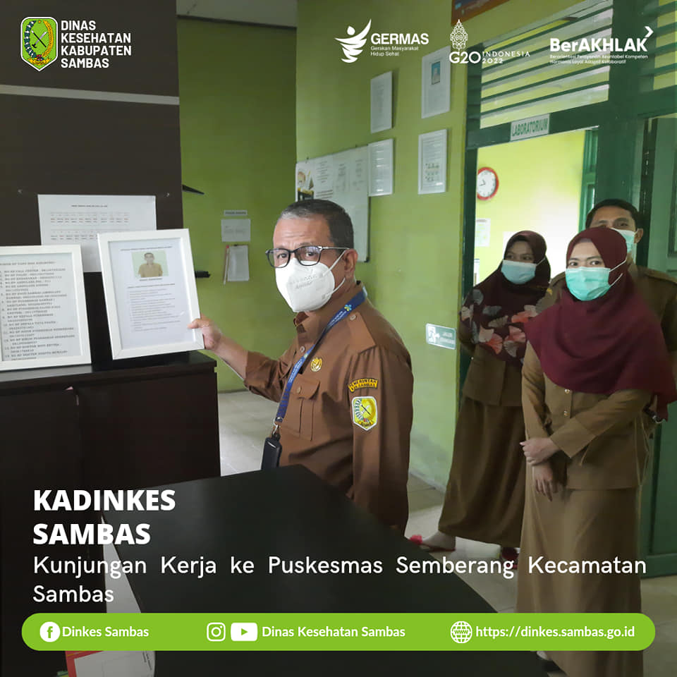 Sambas – Kepala Dinas Kesehatan Kabupaten Sambas Hendy Wijaya, SKM., MPH., bersama Sekretaris Dinas Kesehatan Kabupaten Sambas Purtiko Eldiyanto, SH., MH., melakukan kunjungan kerja ke Puskesmas Semberang Desa Sumber Harapan Kecamatan Sambas Selasa, 11 Oktober 2022.