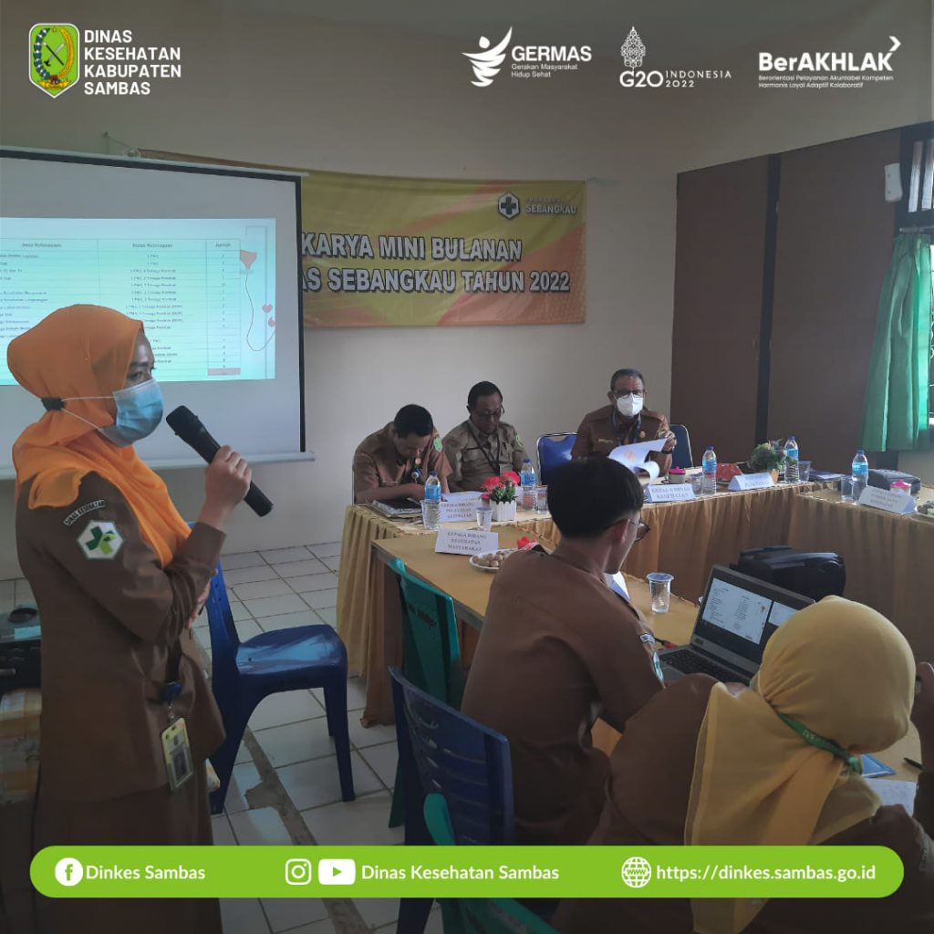 Sambas – Kepala Dinas Kesehatan Kabupaten Sambas Hendy Wijaya, SKM., MPH., didampingi Sekretaris Dinas Kesehatan Purtiko Eldiyanto, SH., MH., menghadiri Lokakarya Mini ( Lokmin ) Bulanan Puskesmas Sebangkau Kecamatan Pemangkat Tahun 2022 Senin, 10 Oktober 2022.