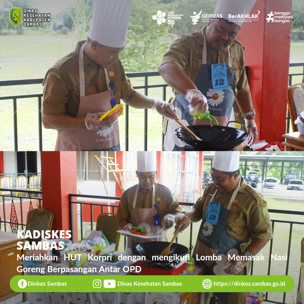 SAMBAS – Kepala Dinas Kesehatan Kabupaten Sambas dr. Ganjar Eko Prabowo, M.M., ikut berpartisipasi dalam perlombaan memasak Nasi Goreng Antar OPD dalam rangka HUT Korpri ke-52 diselasar Aula Utama Kantor Bupati Sambas Senin ( 27/11/2023 ).