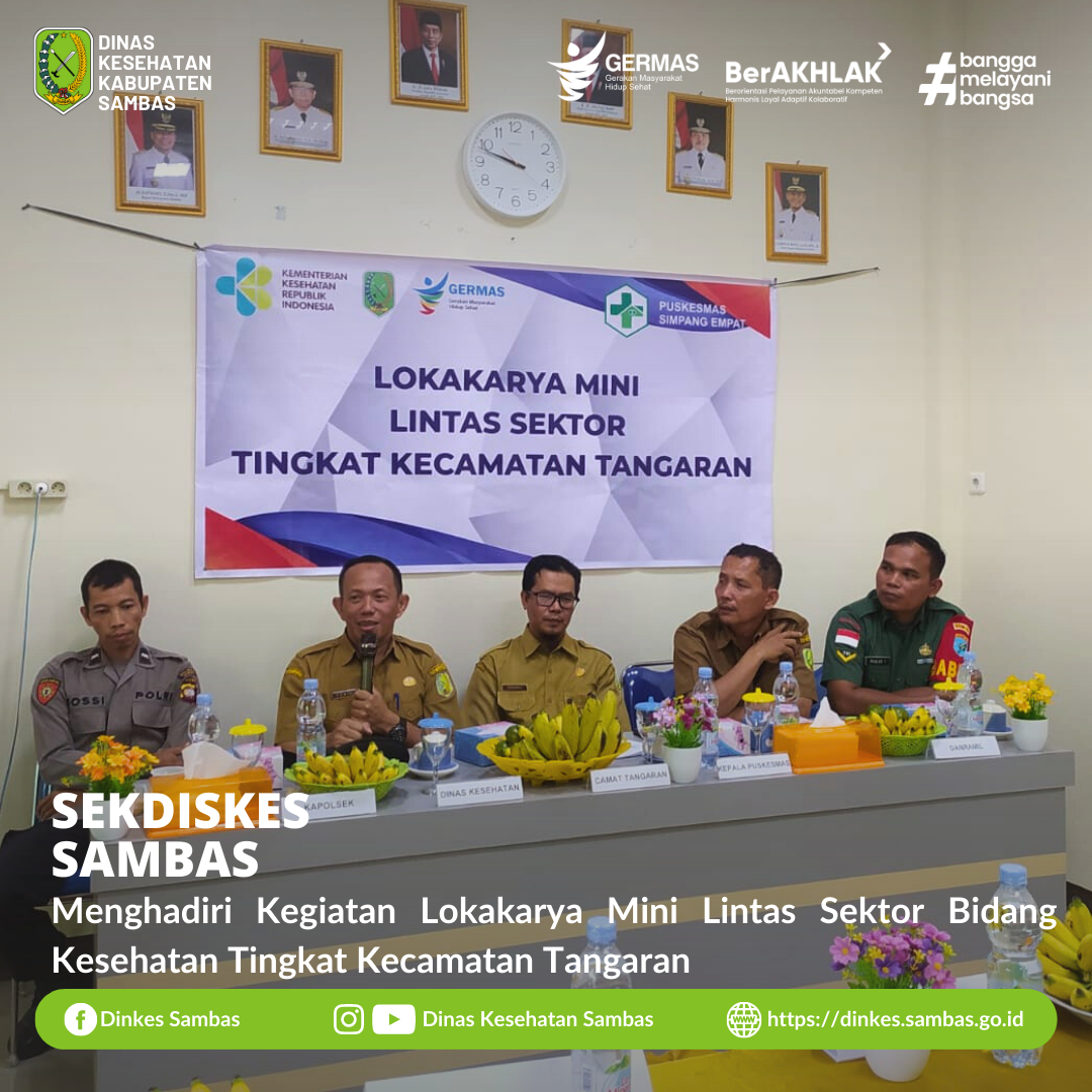 SAMBAS – Sekretaris Dinas Kesehatan Kabupaten Sambas Ponidi, S.K.M., M.M., menghadiri kegiatan Lokakarya Mini Lintas Sektor Tribulan Kedua Bidang Kesehatan Tingkat Kecamatan Tangaran di Ruang Rapat Puskesmas Simpang Empat Kec. Tangaran Selasa, 11 Juli 2023.