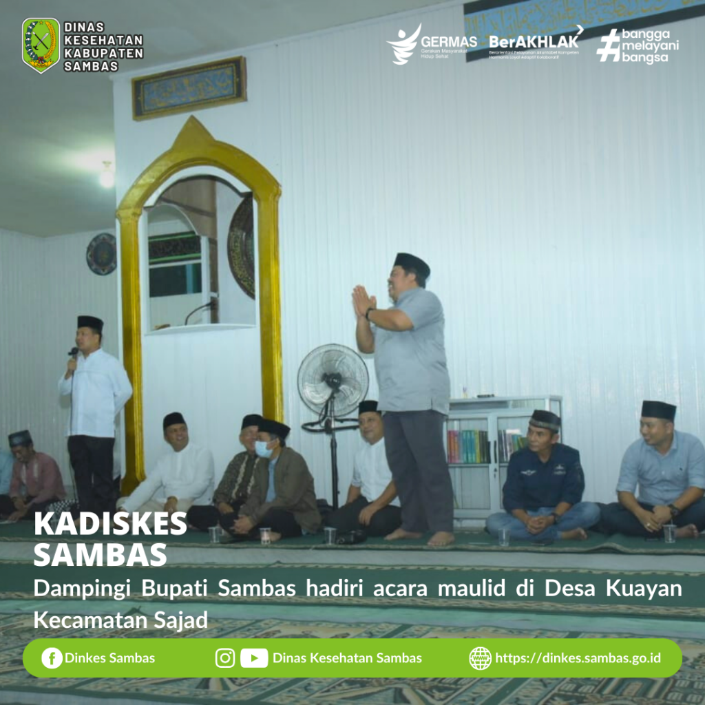 SAMBAS – Setelah melakukan peletakan batu pertama pembangunan jembatan berkemajuan Non APBD di Kecamatan Sejangkung, Kepala Dinas Kesehatan Kabupaten Sambas dr. Ganjar Eko Prabowo, M.M., dampingi Bupati Sambas H. Satono, S. Sos.I., M.H., menghadiri acara Maulid di Masjid At – Taqwa Desa Kuayan Kecamatan Sajad Ahad malam, 1 Oktober 2023.
