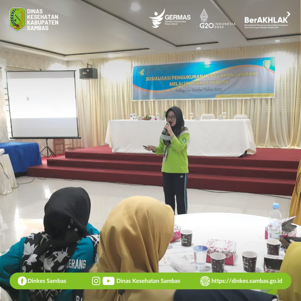 Sambas – Sekretaris Dinas Kesehatan Kabupaten Sambas Purtiko Eldiyanto, SH., MH., mewakili Kepala Dinas Kesehatan membuka kegiatan Sosialisasi Pengukuran Kebugaran Jasmani melalui Aplikasi SIPGAR.