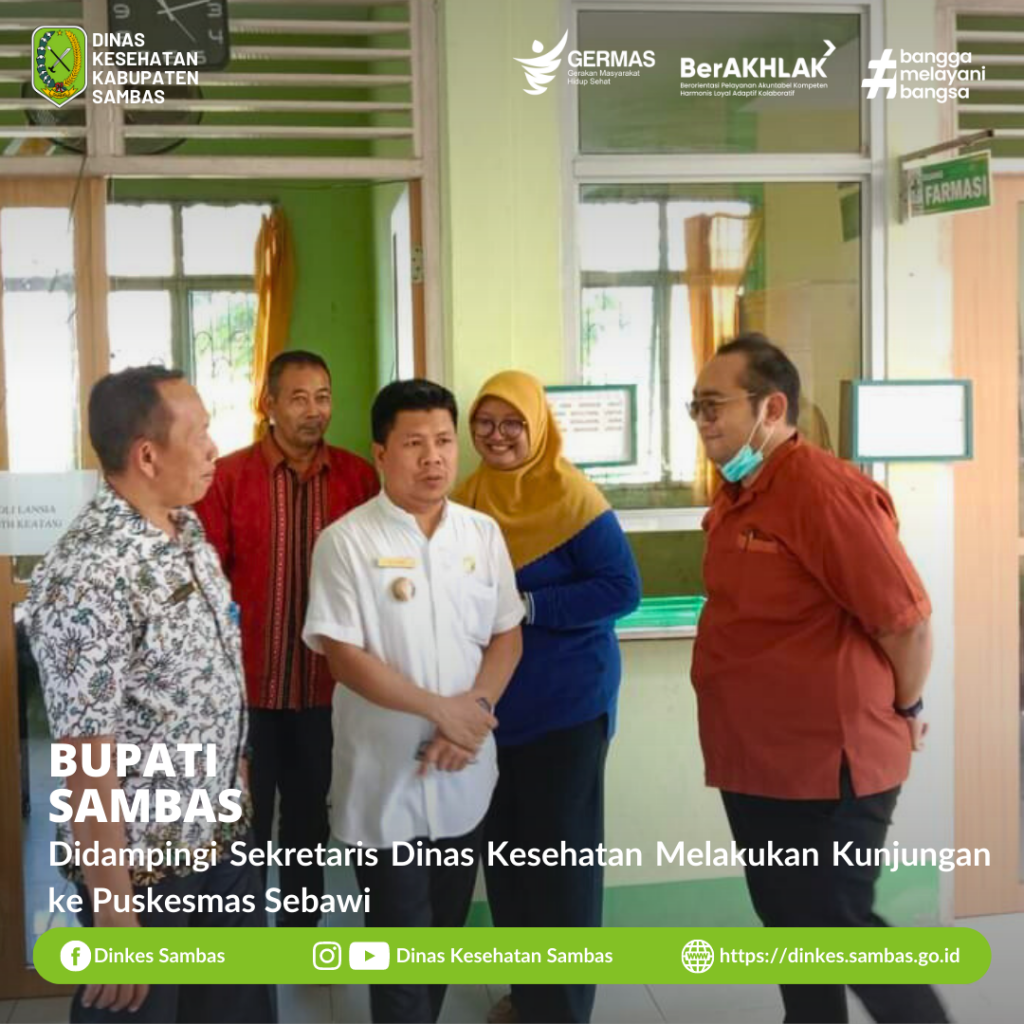 SAMBAS – Bupati Sambas H. Satono, S. Sos.I., M.H., didampingi Sekretaris Dinas Kesehatan Kabupaten Sambas Ponidi, S.K.M., M.M., bersama Kabid P2P dan Kabid Kesmas Dinkes Sambas melakukan kunjungan ke Puskesmas Sebawi Kec. Sebawi Jum’at, 23 Juni 2023.