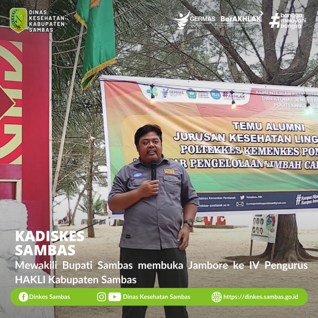 SAMBAS – Kepala Dinas Kesehatan Kabupaten Sambas dr. Ganjar Eko Prabowo, M.M., mewakili Bupati Sambas membuka Jambore ke IV Himpunan Ahli Kesehatan Lingkungan Indonesia ( HAKLI ) Kabupaten Sambas di Pantai Bahari Desa Jawai Laut, Kecamatan Jawai Selatan Sabtu, 30 September 2023.